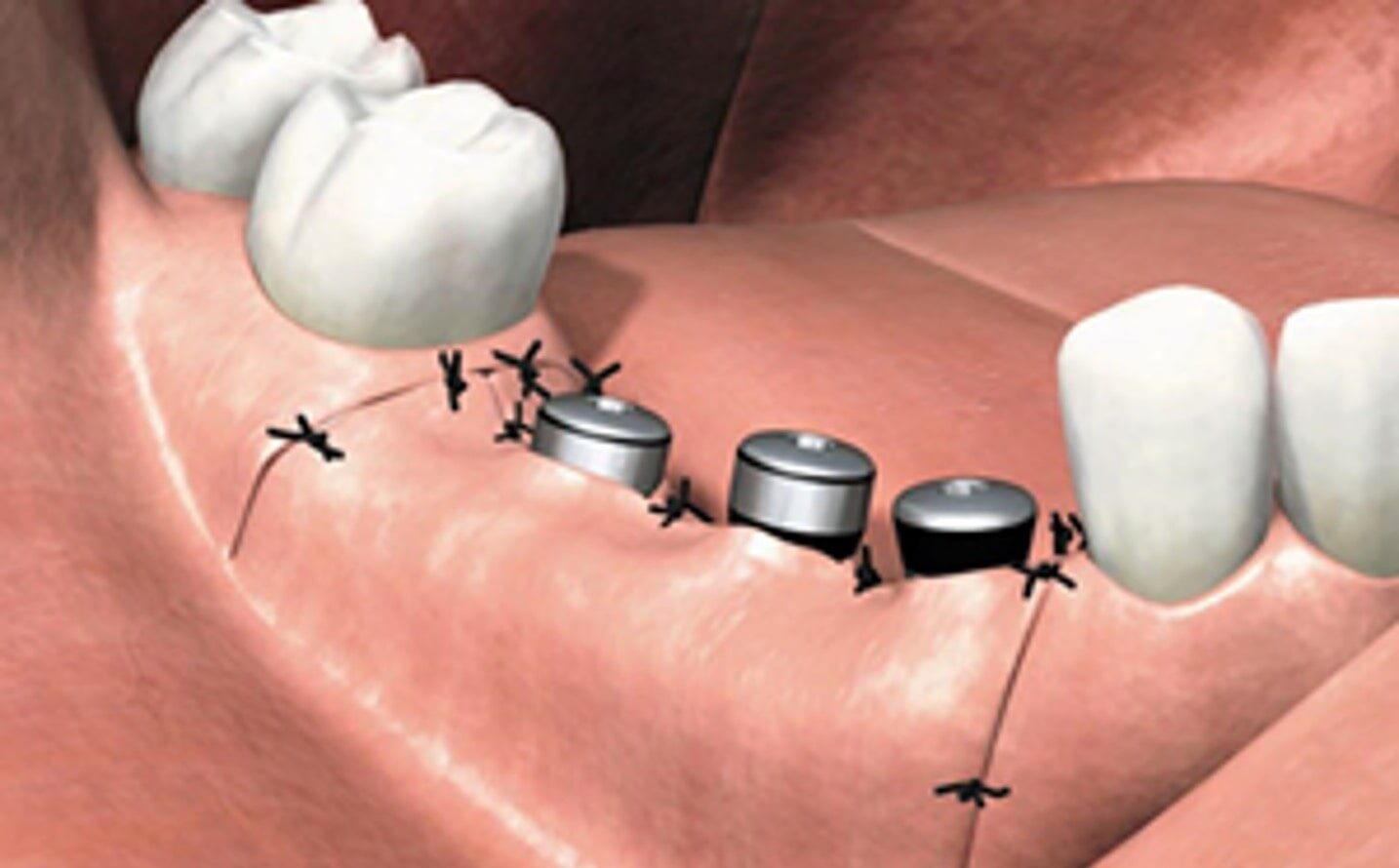 インプラント治療とは、歯が失われてしまった部分に人工の歯根を埋め、その歯根に被せ物を固定し噛めるようにする治療のことをいいます。